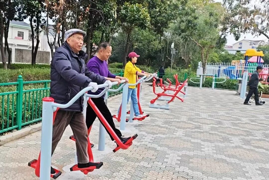 在安亭镇黄渡公园市民益智健身点,仰卧起坐板、划船器等20多件健身器械焕然一新,吸引多名市民前来体验。居民吴阿姨表示,翻新前的器械有些老化生锈,容易产生安全隐患,“但现在器械不仅稳当,还多了使用说明,能帮助我们科学锻炼。”
