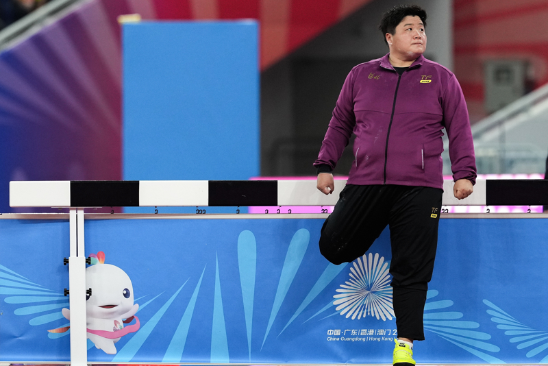 11月16日,河北队选手巩立姣在比赛前。\n 当日,第十五届全国运动会田径女子铅球决赛在广州举行。\n 新华社记者 李一博 摄