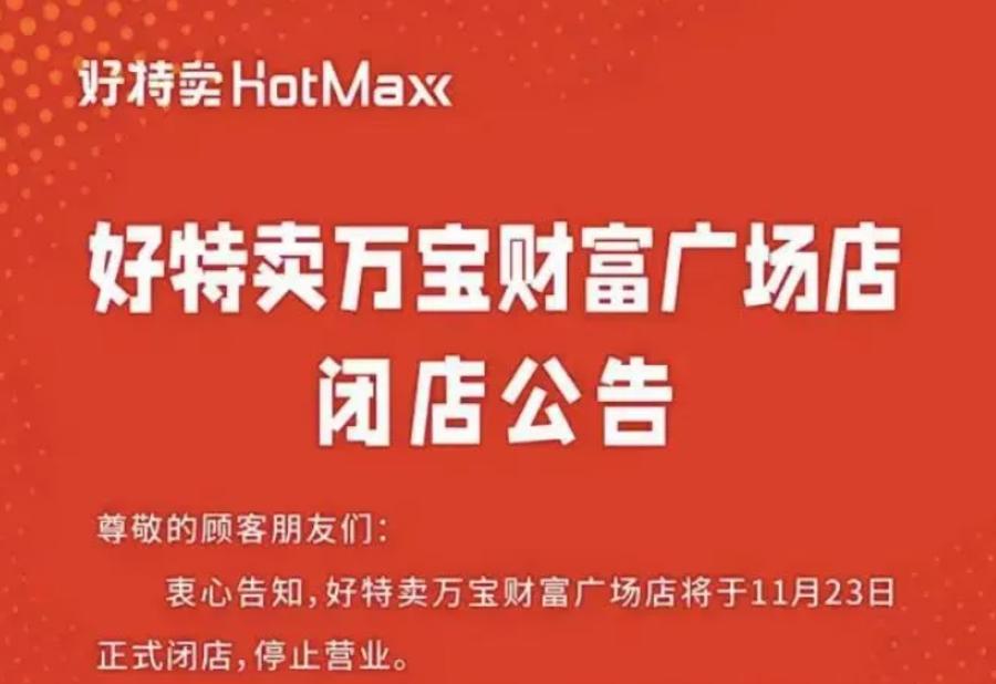 网友称包括镇江万达广场、仙桃吾悦广场等地的好特卖关门,好特卖苏州万宝财富商业广场店也发布“闭店公告”