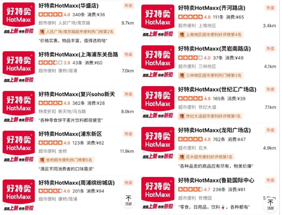 某点评网站显示,好特卖在上海门店众多、遍布全市