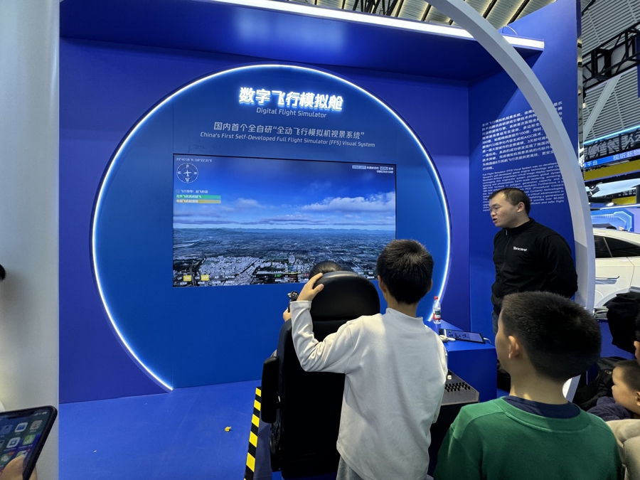 腾讯展台的数字飞行模拟舱 黄佳琪 摄