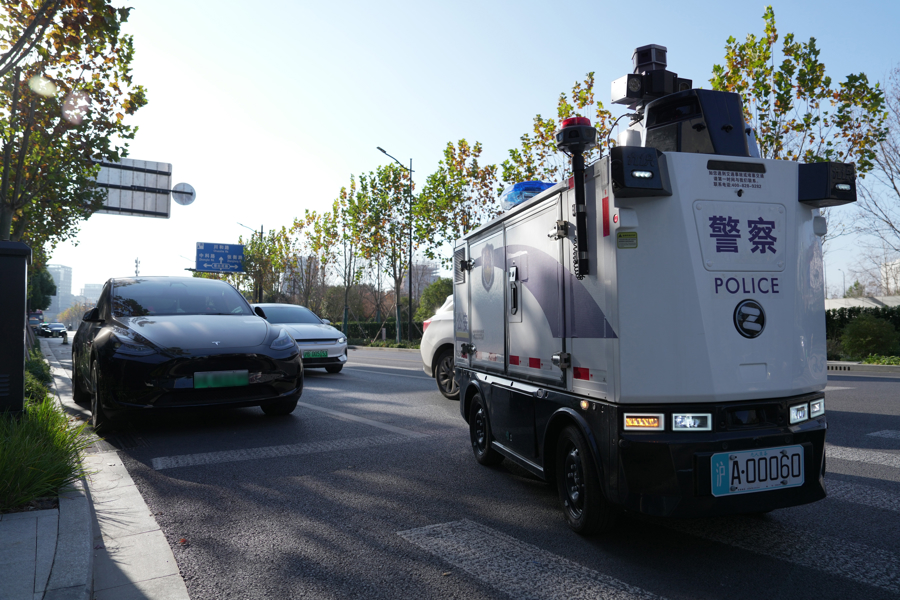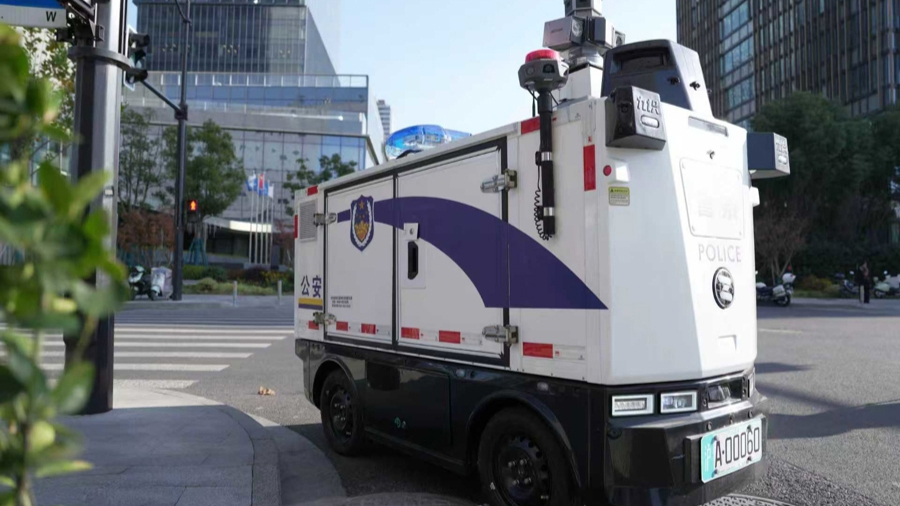 近日,张江人工智能创新小镇内的路中机非隔离护栏被陆续拆除,为防止车辆违停现象回潮,浦东公安分局交管支队在部分路段试点试用警用无人驾驶装备,对路段的违法停车行为进行管理。