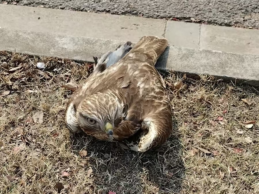 1月7日上午,陈家镇派出所再次接到群众张先生报警,称其发现一只翅膀受伤、疑似保护鸟类“老鹰”。民警朱兴洲迅速抵达,发现该只“老鹰”羽毛蓬松、精神不振,翅膀有明显羽毛缺失,飞行能力暂时丧失。