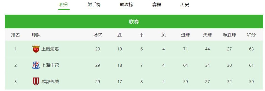 蓉城退出冠军竞争行列,海港、申花在最后一轮争夺奖杯。