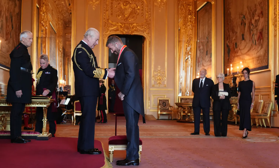 据英媒报道,英国当地时间11月4日,贝克汉姆正式被授予爵士头衔,以表彰他在足球及对英国社会的贡献。查尔斯国王在伯克郡温莎城堡为贝克汉姆举行授勋仪式,这位50岁的前英格兰队长今年早些时候被列入国王生日荣誉名单。