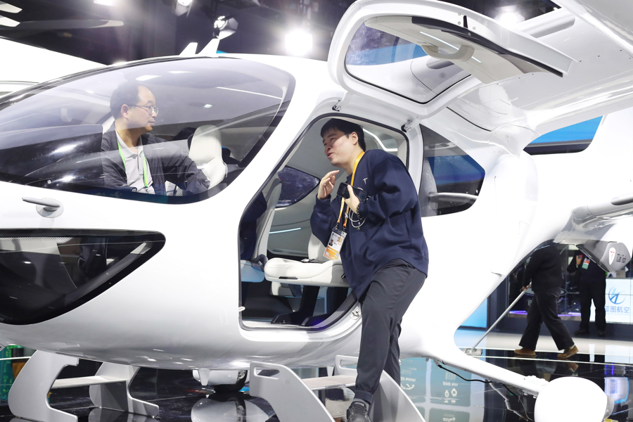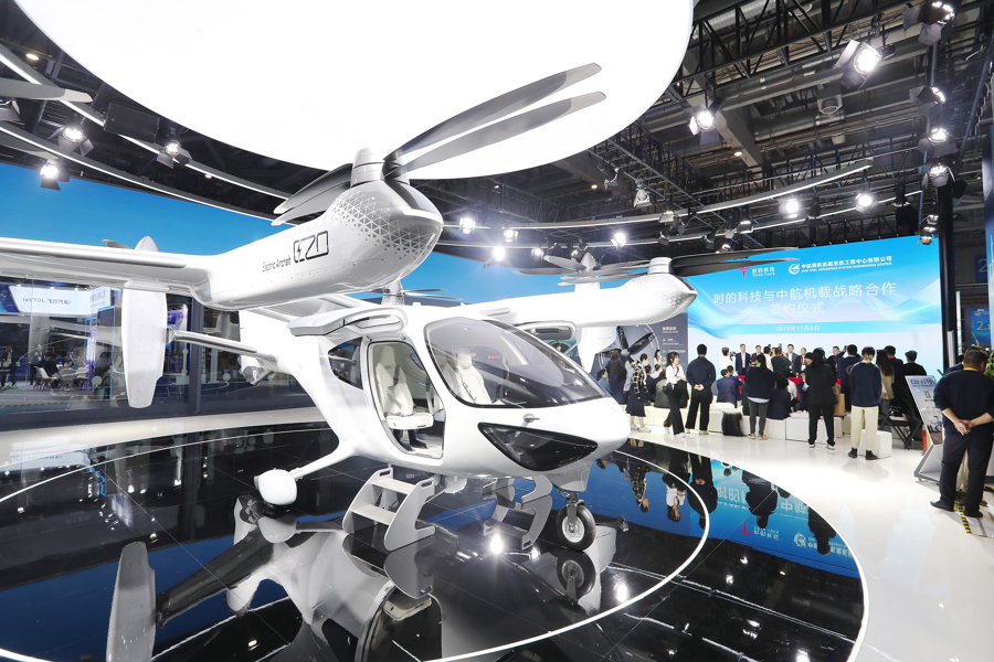 展台中心,一架E20 eVTOL真机开放参观,吸引进博采购团纷至沓来。